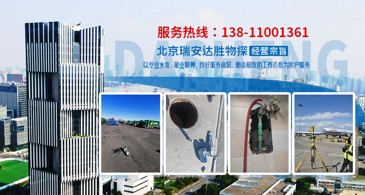 北京瑞安達勝物探技術(shù)有限公司成立于2012年,是一家管線探測、漏水檢測、地面空洞(塌陷、病害)檢測等業(yè)務(wù)的企業(yè)。公司自成立以來一直為各市政單位、開發(fā)商、設(shè)計單位、物業(yè)小區(qū)、學校、工廠等企事業(yè)單位提供:地下管線定位探測、漏水檢測、地質(zhì)勘測、資源勘探等業(yè)務(wù)。